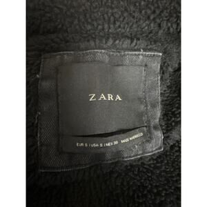 Zara Denim Jacket Mens small Black Denim Fleece Sherpa Lined Biker Motorcycle