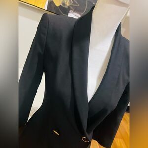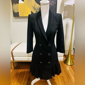 Zara Stylish black double-breasted blazer dress with a ruffled hem and black and gold decorative buttons, Perfect for a chic look. size small
