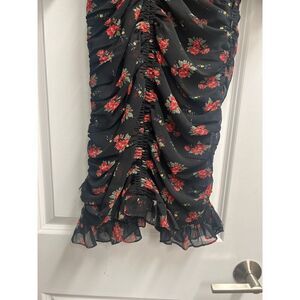 Zara Black Floral Ruched Mini Dress with Sleeves size S
