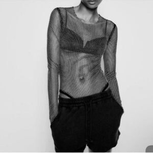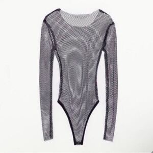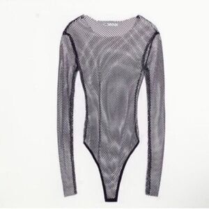 Zara Black Studded Multicolored Mesh Bodysuit(Size Small)