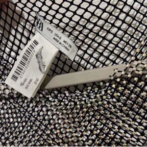 Zara Black Studded Multicolored Mesh Bodysuit. Missing a stud on Last picture not noticeable, Size tag is slightly detached. Snap Closure, Pit to Pit 16.5" NWOT