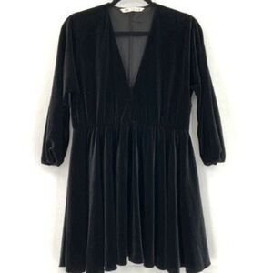 Zara Black Velvet Puff Long Sleeve Mini Dress Size Small