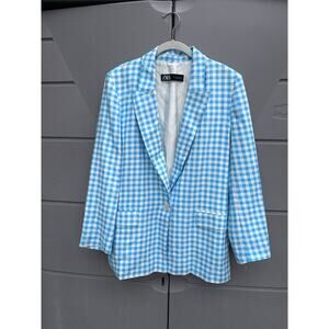 Zara Blazer Blue & White Gingham Blazer Bloggers Favorite Preppy Clueless Sz L