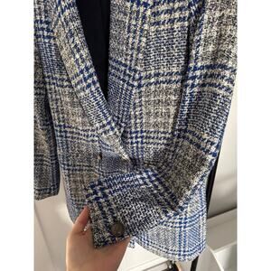 Zara Frock Blazer Coat Plaid Pronounced Shoulders Blue/White Color Size XS