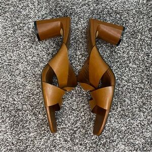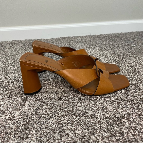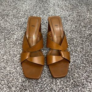 Zara Block Heel Brown Leather Sandals Chunky Woman’s Size 41 or US 10