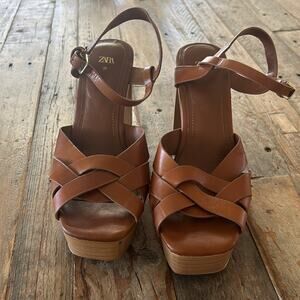 Zara Block Heel Leather Platforms
