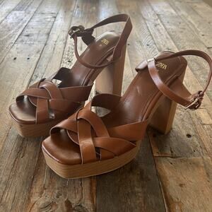 Size 39 Heel height 4.7” In great condition Leather upper Weave style Tan leather