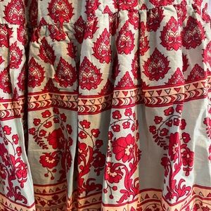 Cotton block print dress, mini length. Length: 34 inches Shoulder to shoulder: 15 inches Sleeve length: 21 inches