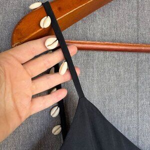 Zara Blogger Black Cowrie Shell Spaghetti Strap Low Back Mini Dress Size Large