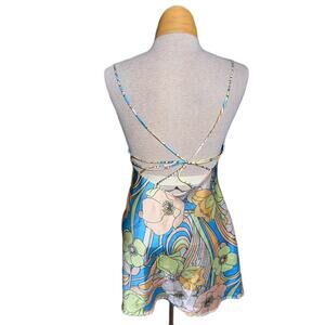 Zara Blogger Fav Retro Mod Floral Satin Strappy Open Back Micro Mini Dress M