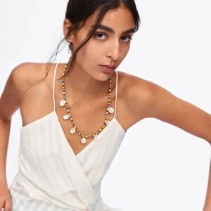 Zara Blogger Fave Cream Striped Knot Front Spaghetti Strap Tunic Dress Size XS