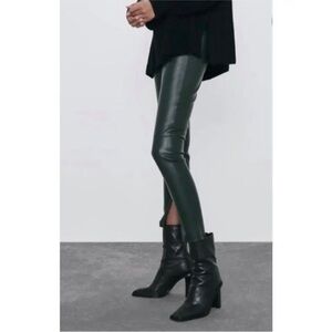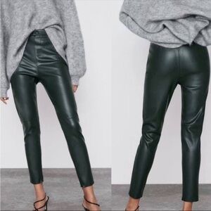 Zara dark forest green faux leather ankle zip NWOT pants size small. Blogger favorite. Trendy, edgy, style. (S)