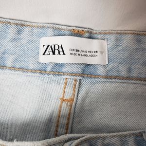 Zara Wide Leg Ripped Light Blue Jeans Size US6.