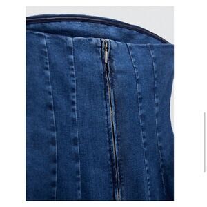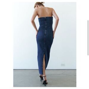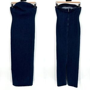 Zara Blogger Favorite Viral Denim Back Zip Strapless Bodycon Midi Dress Small