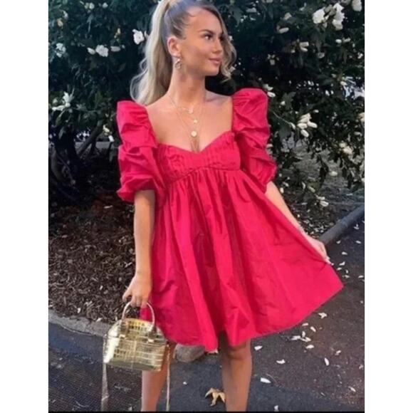 Zara Blogger's Fave Pink Puffed Sleeve Babydoll Mini Dress size L