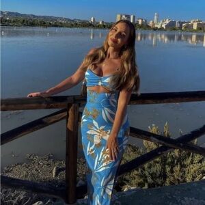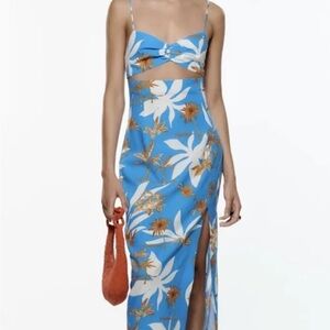 Zara Bloggers Favorite Blue White Midi Cutout Dress Size Large NWT