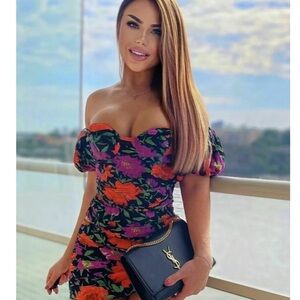 Zara Bloggers Favorite Floral Print Off The Shoulder Puff Sleeve Mini Dress S