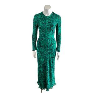 Zara Bloggers Favorite Jacquard Print Long Sleeve Dress Maxi Green S