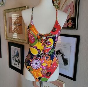 New. Zara - Blogger's Favorite One Piece Swimsuit. Mod floral pattern. Lace up front. Criss cross back. Made in Morocco
