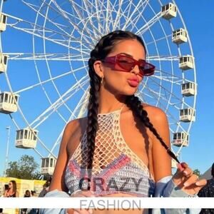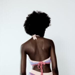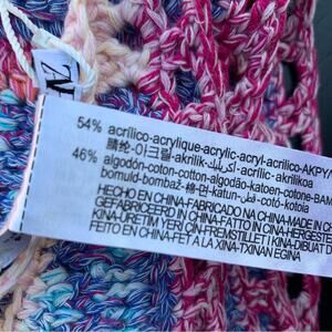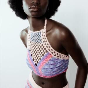 Zara Bloggers Pink Blue Crochet Knit Halter Crop Top Size Medium and Large