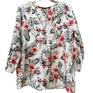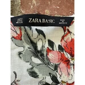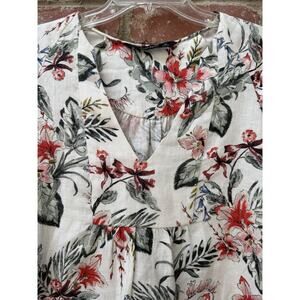 Zara Blouse 100% Linen Top White Floral V-Neck Bell Sleeve Boho Feminine Small