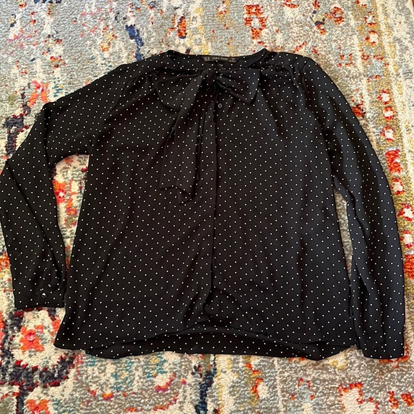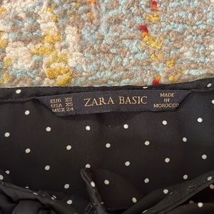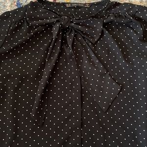 Black and white polkadot Zara blouse with bowtie neckline size XS - Like New Condition