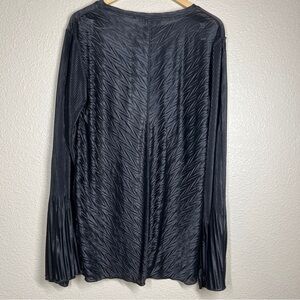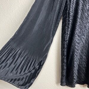 Zara Blouse Contrasting Pleated Top Black Satin Bell Sleeves Women’s Size Large
