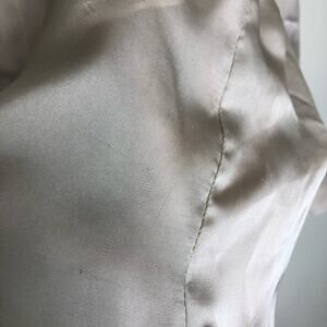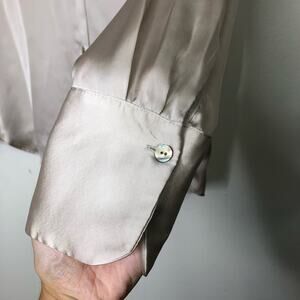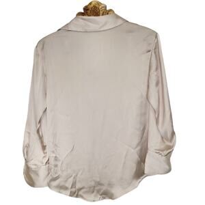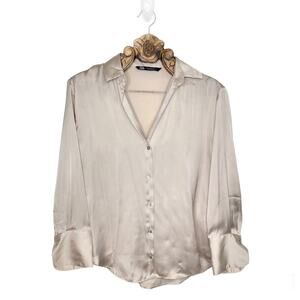 Zara Blouse Satin Long Sleeve Button Up Tan Cream Gold Deep V Neck Oversized xs