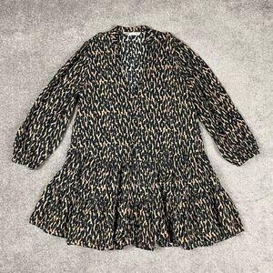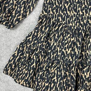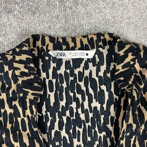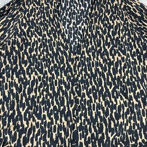 Zara Blouse Women Large Black Animal Print Tierred Tunic Cloth Button Flowy Soft