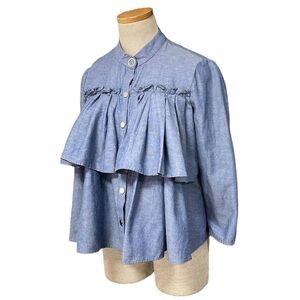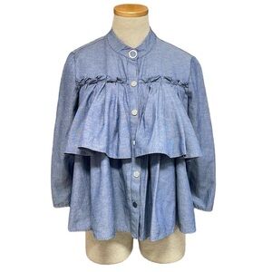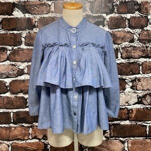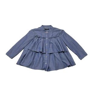Zara Blouse Women's Medium Blue Chambray Long Sleeve Snap Button Front
