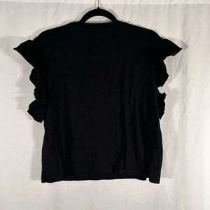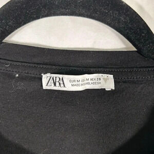 Zara Blouse Women's Medium Solid Black Short Sleeve 100% Cotton