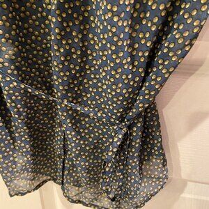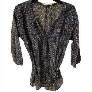 Zara Blouse Womens S Tie Waist Belt Blue Sheer career geometric retro boho Y2K