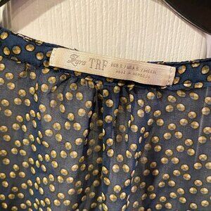 Zara Trf Womens Blouse With Tie Belt Small Blue 3/4 Sleeve Sheer