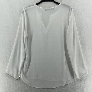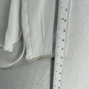 Zara Blouse Women's Sz M White Plain V-Neck High-Low Curved Hem Side Slit