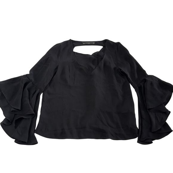 Zara Blouse Womens XS Black Ruffle Sleeve Chiffon Top Draped Back Whimsygoth