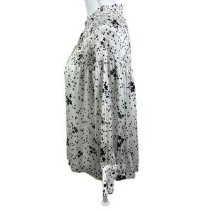 Zara Blouse Top Women's XS Stars and Flower Print Smocked Chest Keyhole Tie Closure