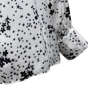 Zara Blouse Women's XS Stars and Flower Print Smocked Chest Keyhole Tie Closure