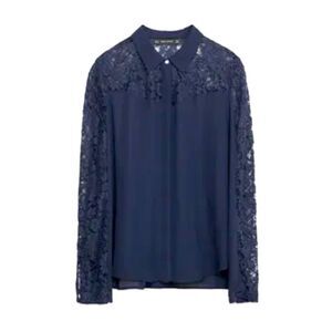 😍🔥🔥 Zara Blouse XS Contrast Lace Top Shirt Blouse Lightweight and Beautiful
