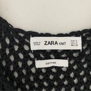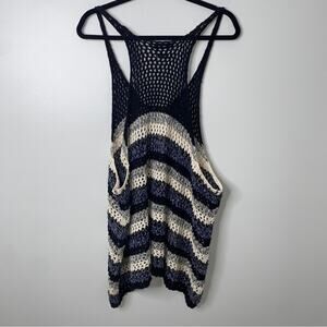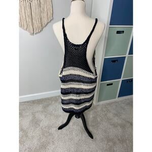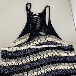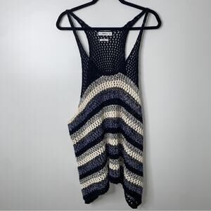 Zara Blue Black Loose Knit Crochet 100% Cotton Beachy Coastal Tank Top Small