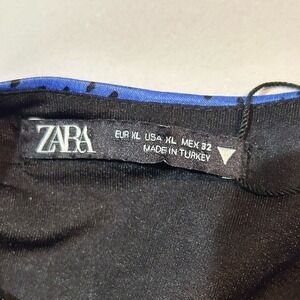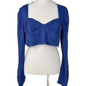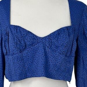 Zara Blue Black Polka Dot Long Sleeve Crop Top Women’s Size XL