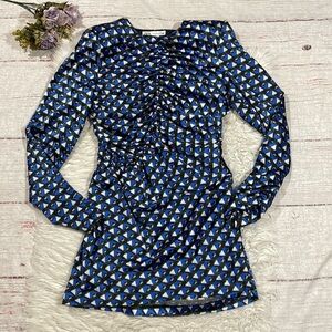 Zara Blue Black Satin Geometric Print Ruched Mini Dress