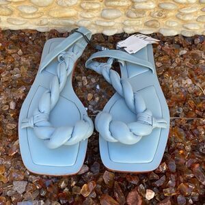 Zara Blue Braided/Twist Leather Slip On Sandals Size 7.5. NWT New! Summer