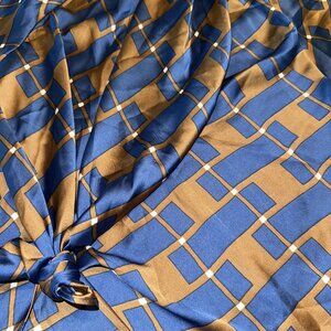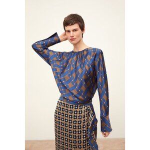 Zara Blue Brown Printed Long Sleeve Keyhole Back Blouse Women's Small S