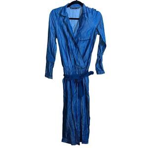 Zara Blue Chambray Wide Leg Denim Look Jumpsuit Size XS NWOT