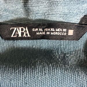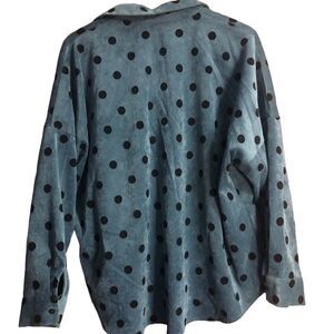 Zara Blue Corduroy Button Down Shirt With Black Polka Dots. Hi lo Hem Size XL