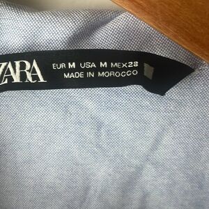 Zara Blue Cropped Utility Button Down Shirt Sz Medium