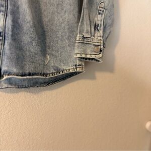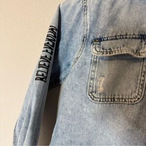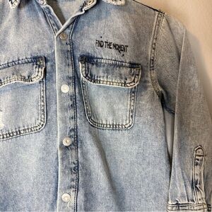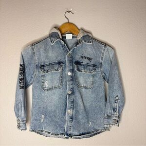 Zara Blue Denim Jacket Shirt Button Up with Removable Gray Hood Boy Kids Size 7