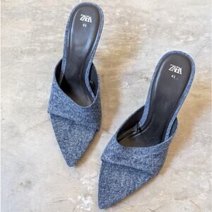 Zara Blue Denim Jean Heeled Open Toe Sandals, size 41/US10