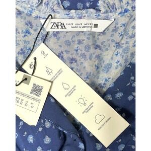 Zara Blue Ditsy Floral Print Long Sleeve Blouse Small NWT Romantic Casual Boho