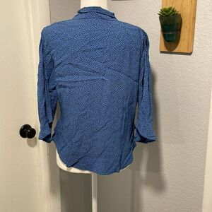 Zara Blue Dotted Tie Neck Flare Sleeve Relaxed Flowy Fit Blouse Size Medium